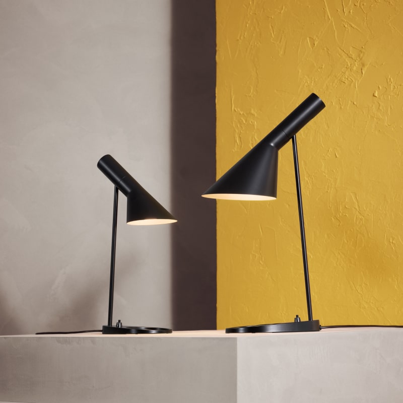 Fra den ikoniske AJ Royal pendel til den karakteristiske AJ-lampe er Arne Jacobsens bord-, gulv- og væglamper kendetegnet ved et slankt formsprog og et behageligt, blændfrit lys.