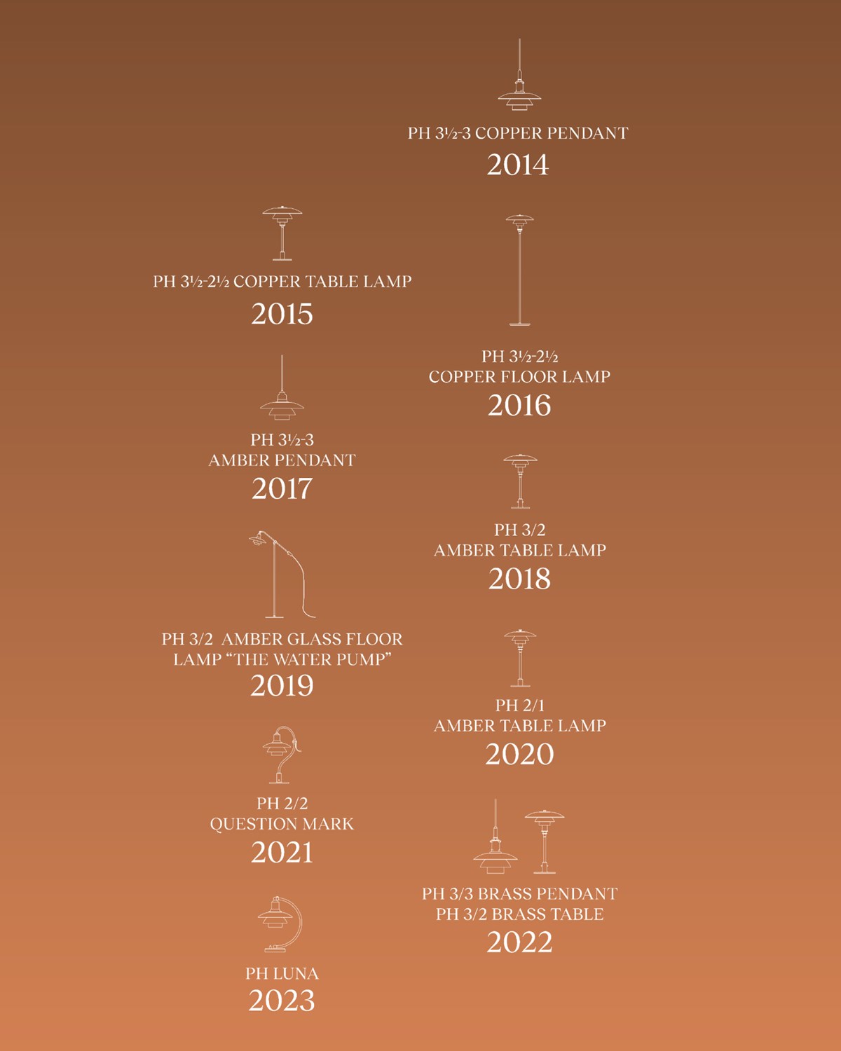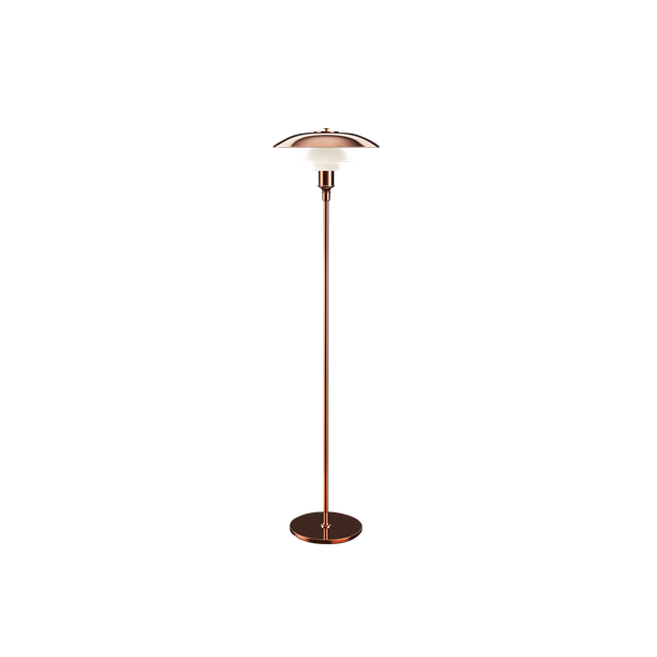 The top shade is available as either mouth-blown opal glass or copper with a white inner surface. The copper top shade has a copper outer surface and a white inner surface that ensures soft, downward light distribution The glass top shade is made of mouth-blown white opal glass and provides more diffuse light. The two lower opal glass shades provide a larger lighting surface to make more efficient use of the light source. The glass shades are polished on the outside and matt on the inside. The downward light is both soft and pleasant.