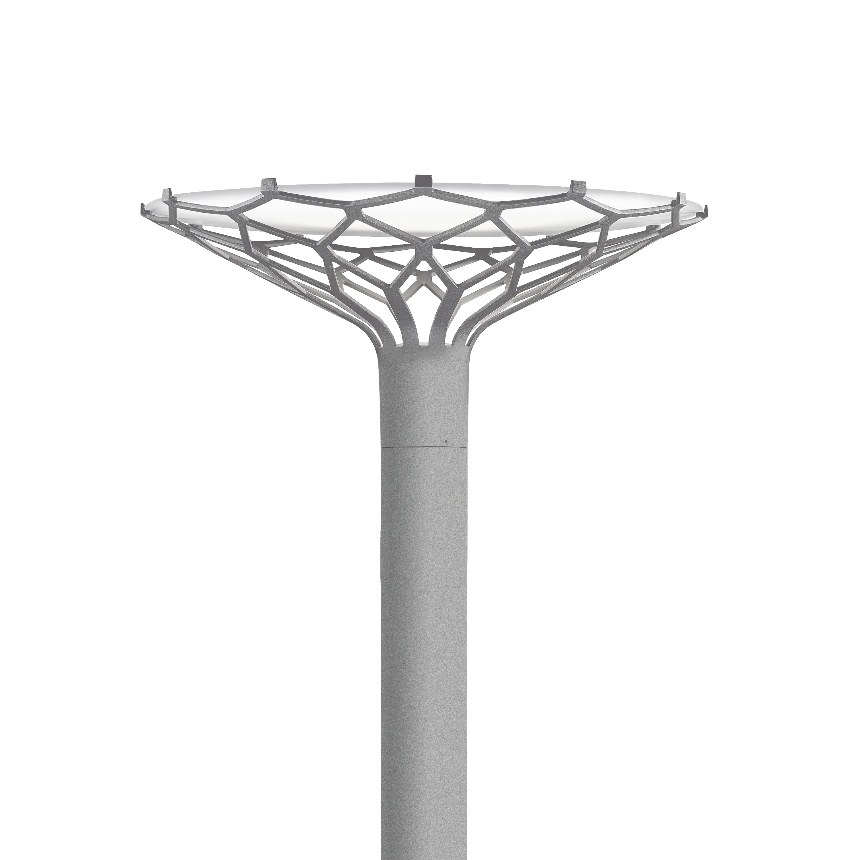 LP Nest was launched in 2010 and was designed by Bystrup Design. The designer was tasked with creating a post light focusing on technical requirements such as cut-off criteria and glare-free lighting, as well as specific aesthetic aspects. The idea was to take inspiration from structures in nature. Erik Bystrup explains LP Nest as follows: The lamp shade grows out of the cool steel trunk like a stylistic tree crown. A filigree pattern that imitates winters beautiful denuded trees as it gently lifts a disc of life-giving light. The design takes into consideration the development of new light sources. This adaptability adds to the fixtures appeal.