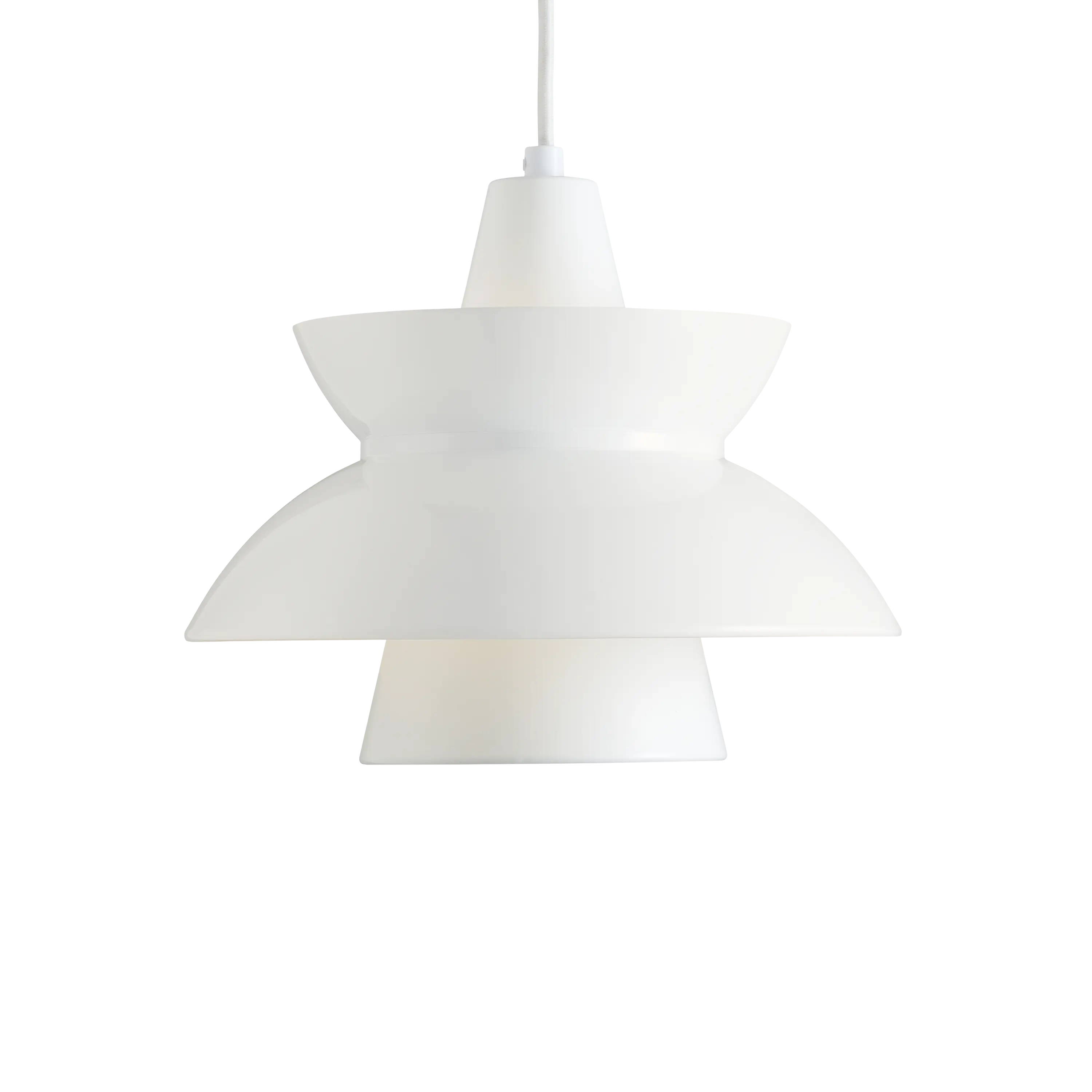 Originally introduced in the 1950's . Was designed in close cooperation between the Navy Buildings Department and Louis Poulsen. The pendant was used for many years in the builidngs of the Navy for many different applications such as canteens and offices. The Navy Pendant, which was the name at that time, was widely used because of the unique lighting properties and utility. Not until the early 1980's the product was taken out of the Louis Poulsen catalogues. The design appears timeless but has a strong connection to the New Look of the 1950s. It was reintroduced as Doo-Wop in 2012 in new colours and a brass version. In 2017 with new metal editions in copper and stainless steel. The production methods are the same and the shades are still spun by hand and completed with the fine rolled edge which gives the shades a special optical volume. Especially the brass variant challenges the craftsman as it is spun from a solid brass plate and appears polished.