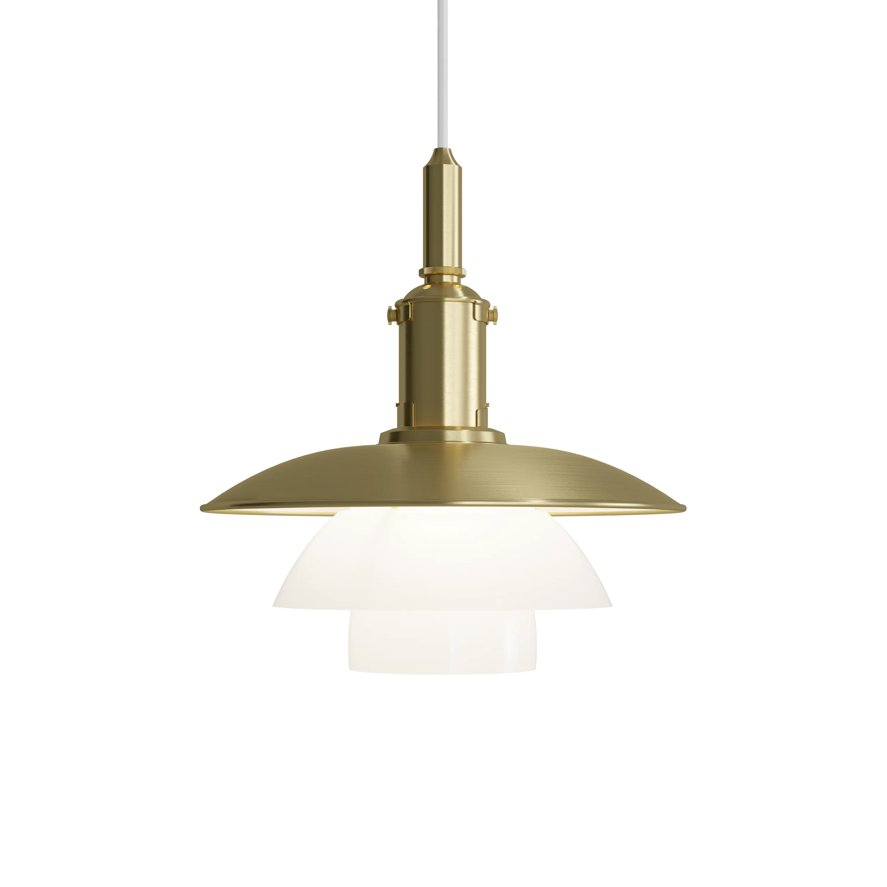 Poul Henningsen designed hundreds of lamps based on the three-shade system he developed in 1926 to enable unequalled lighting quality for all purposes. Many of his lamp designs include a number that refers to the shade sizes of each fixture. The PH 3/3 is described as a ‘whole’ sized pendant, characterised by its appealing compact semblance with the top shade of approximately 30 centimetres corresponding to the middle and lower shade in the proportions 3:2:1. PH’s ‘whole’ sized fixtures are designed to be particularly glare-free and are therefore ideal placed high in a room where they integrate superior quality lighting with a warm ambience. The more widely known ‘hybrid’ sizes, on the other hand, are designed to hang low and provide optimum lighting and an attractive atmosphere above a table, for example. In 2022, Louis Poulsen continues this ‘whole’ sized line with the introduction of the PH 3/3 Pendant Limited Edition. Made of opal glass and brass, it offers a particular soft and uniform light distribution with the two lower opal glass shades being glossy on top and sandblasted matt on the underside. The brass is characterised by the fine lines that follow the round shape of the fixture. The pendant comes with a specially designed brass canopy and is a limited edition and collector’s item; the brass socket house is marked with PH’s initials. The brass is untreated and will patinate stylishly over time. However, to keep the original finish, it can be polished carefully once in while. The PH 3/3 Pendant Limited Edition will elevate any room, both small spaces as well as areas with high ceilings, whether it be a hallway or kitchen, a bedroom or a living room. This classic Danish design in brass and opal glass looks striking in rows above a table or in a hallway, for example. The pendant is available for a limited period only.