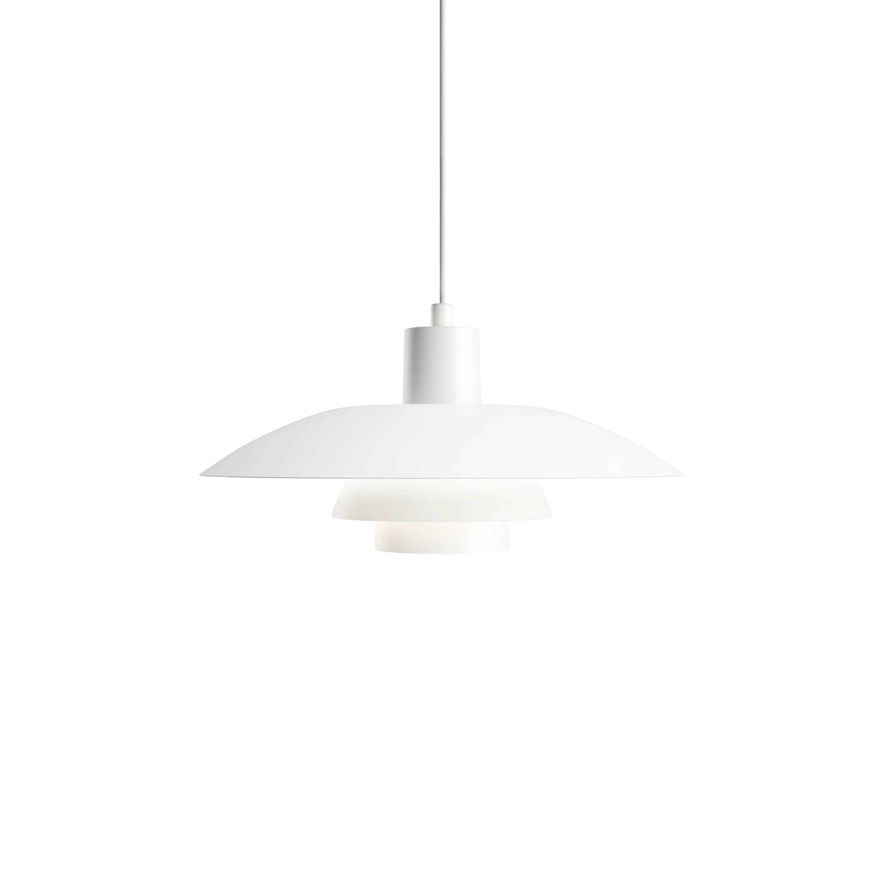 Poul Henningsen designed the three-shade system back in 1925-1926. The first lights using the system were designed by PH in cooperation with Louis Poulsen for an exhibition in Paris. His work with Louis Poulsen continued right up until his death in 1967. Throughout his life, PH sought to create glare-free light, direct light where it was most needed, and create soft shadows, using incandescent bulbs as a light source. The PH 4/3 Metal Pendant was launched in 1966. Its design follows the general three-shade system based on the logarithmic spiral, with the centre of the light source positioned at the centre of the spiral. This light is a simplification of the light PH designed in 1929. The light won him the highest distinction at the world exhibition in Barcelona at that time. Metal pendants were produced in a number of formats and colours, and the underside of the shade was painted white to provide diffuse light. To achieve warmer lighting, metal pendants were also produced with a gold-coated underside at one stage. Metal pendants have been produced in a number of sizes and colours over the years.