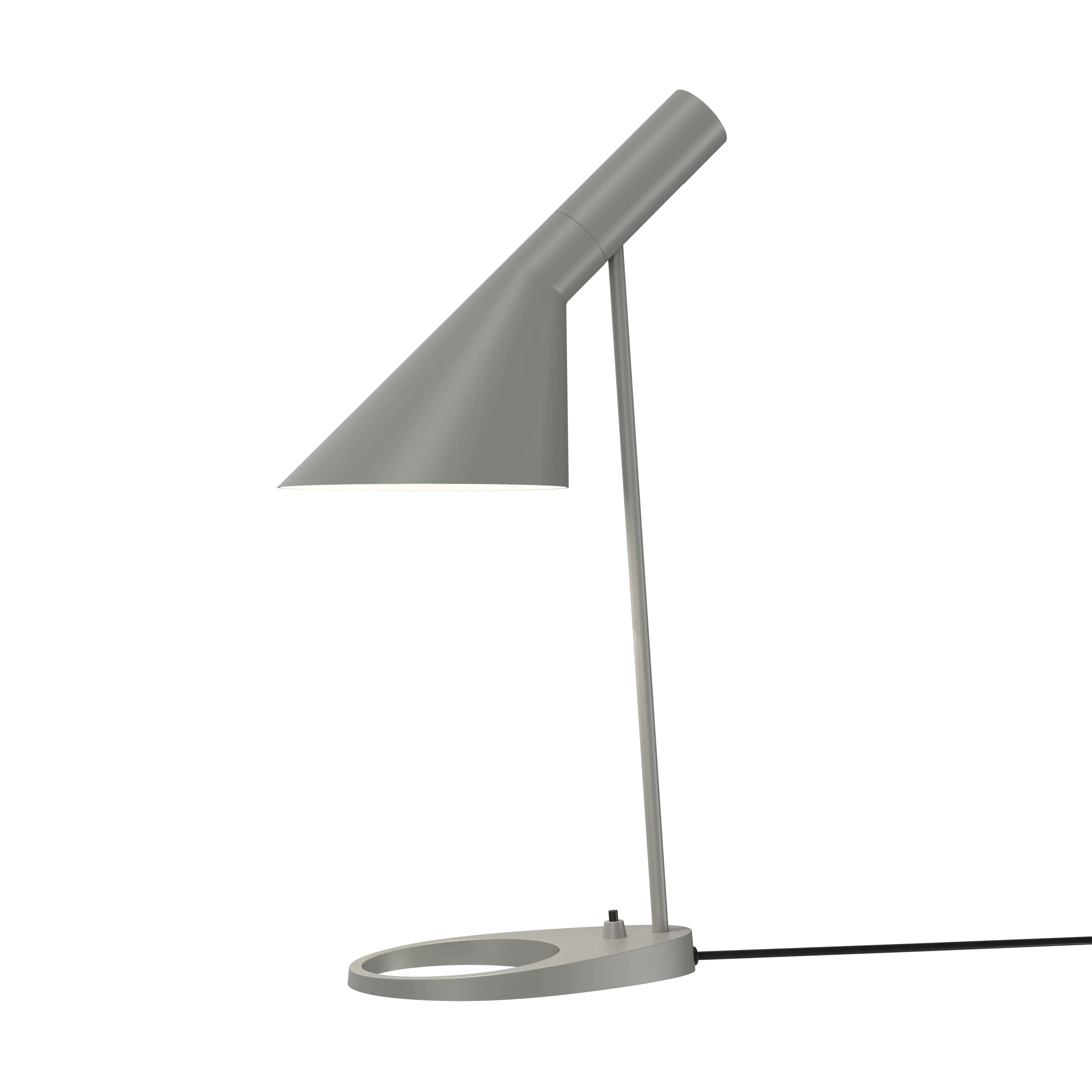 Arne Jacobsen designed this fixture, among many other features, for the SAS Royal Hotel in Copenhagen, in 1957. The table lamp yields a pleasant downward directed light with its white painted inner shade. Furthermore, the shade can be tilted to adjust light distribution.