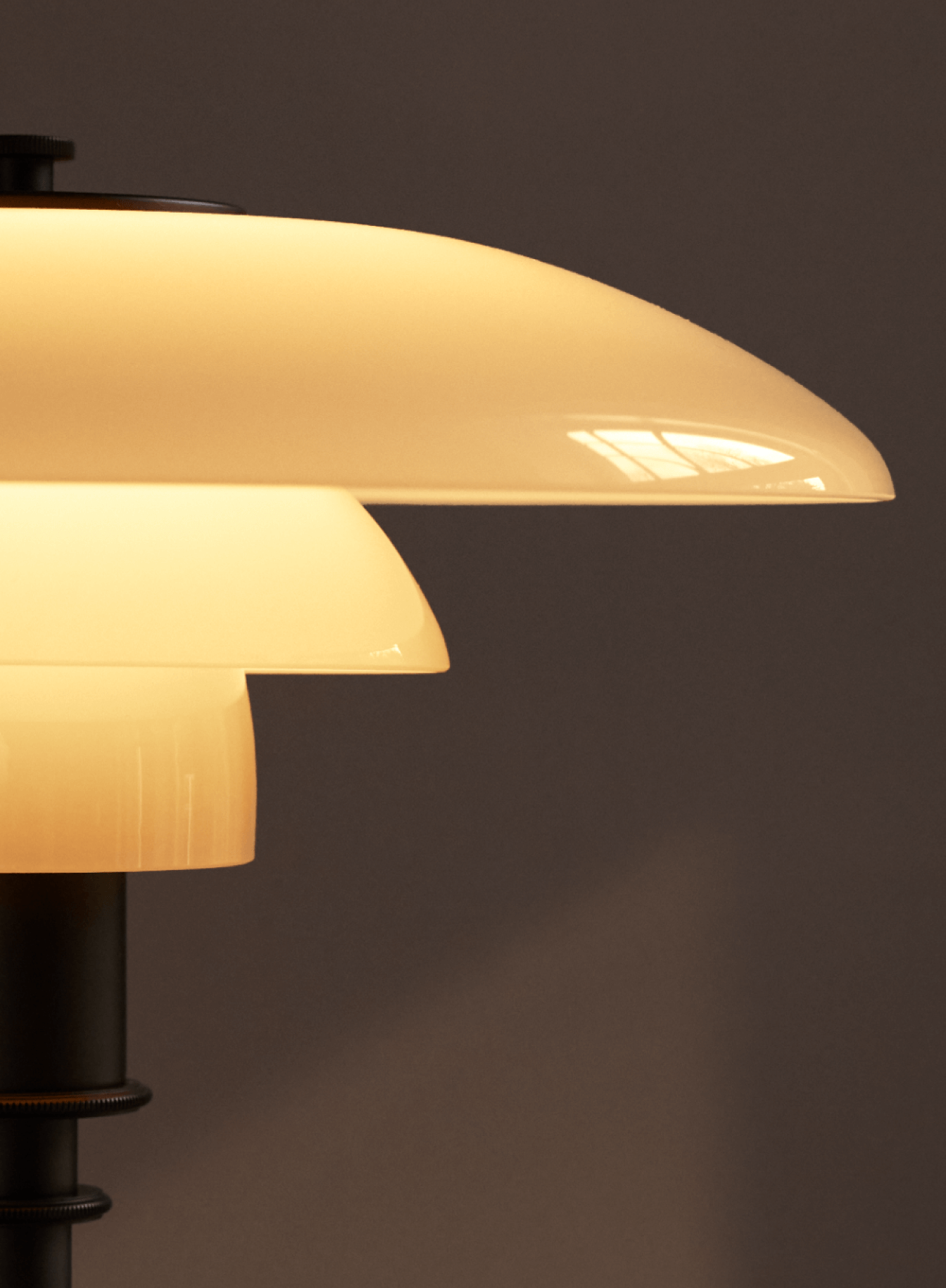 El diseñador danés presentó la lámpara de mesa PH 3/2 en colaboración con Louis Poulsen en 1927, poco después de desarrollar el System PH, que permitió una calidad de iluminación inigualable para una variedad de fines, y sirvió de base para cientos de futuros diseños de lámparas. Muchos de los diseños de lámparas de Poul Henningsen incluyen un número que corresponde a los diferentes tamaños de pantalla.