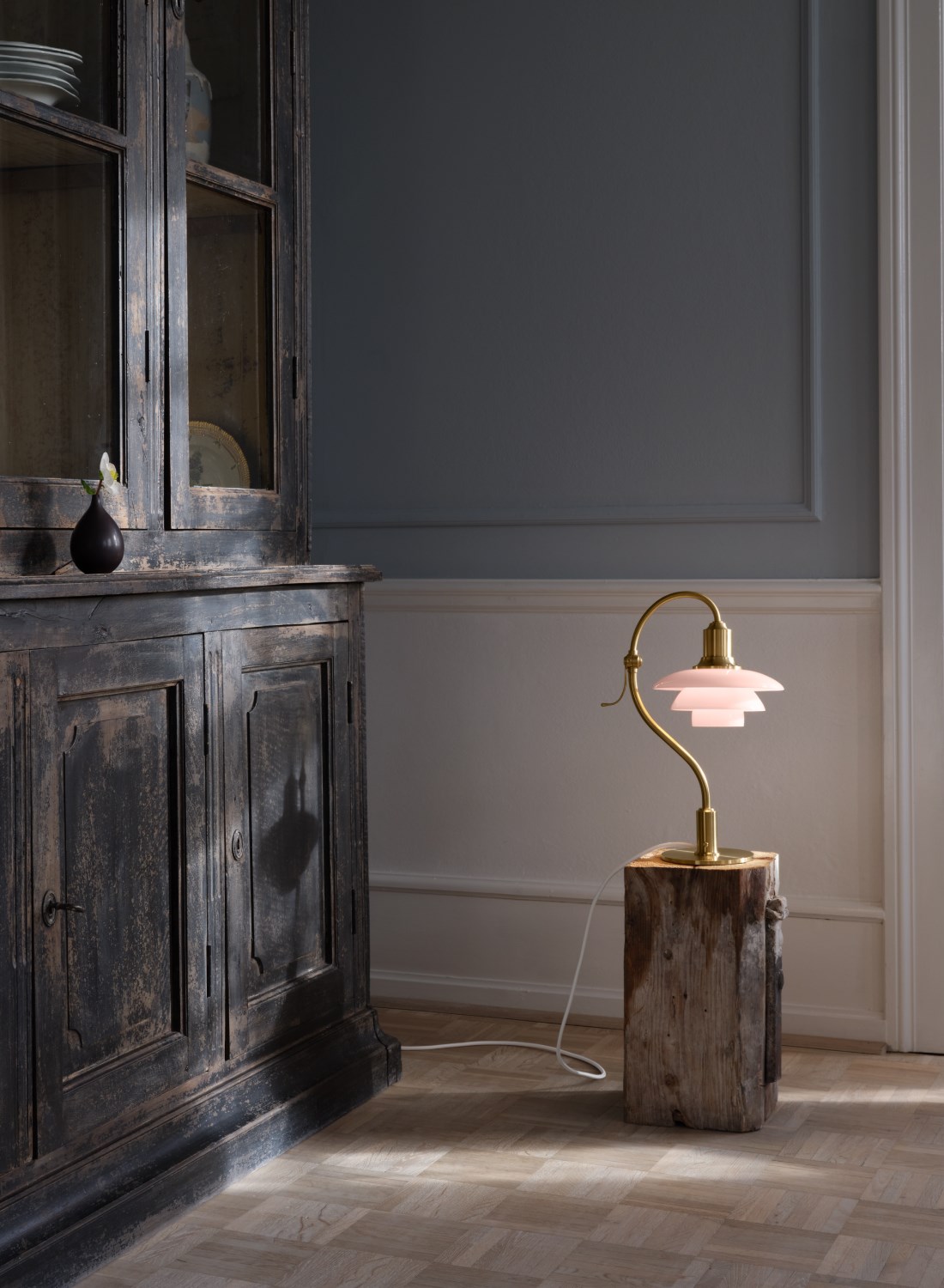 Poul Henningsenin tunnettu ja suosittu PH 2/2 Question Mark on saanut uuden ilmeen vaaleanroosan väristen lasivarjostimien ja harjatun messingin avulla. Jokainen kolmesta varjostimesta on valmistettu suupuhalletusta vaaleanroosasta kolmikerroksisesta lasista, jonka sisäpinta on hiekkapuhallettu maidonvalkoiseksi.