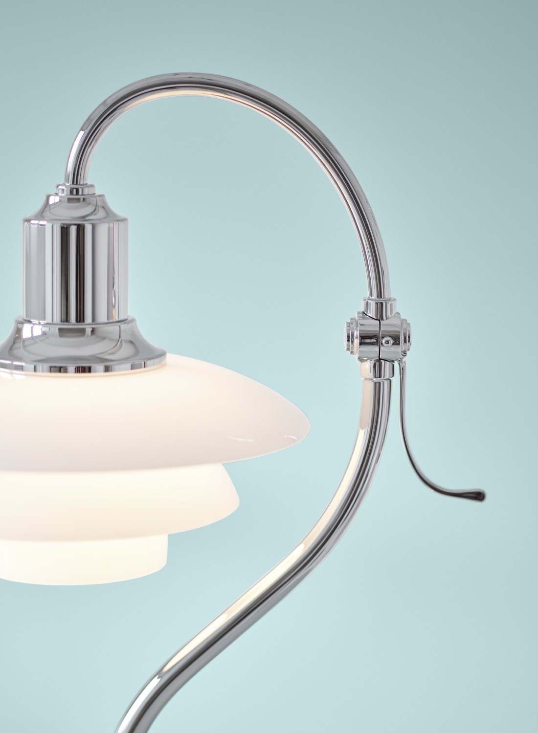 Conçue par Poul Henningsen en 1931, la lampe de table "Point d’interrogation" PH 2/2 Question Mark est basée sur le système iconique à trois abat-jours connu sous le nom de System PH, créé à l’origine en 1926, où trois abat-jours en verre soufflé à la bouche fournissent une lumière douce et non éblouissante. Comme l’indique son nom inspiré de la courbure de son pied, cette petite lampe de table possède une forme caractéristique et une tête de lampe réglable qui peut pivoter de 45 degrés pour diriger la lumière selon vos souhaits. Jusqu’au milieu des années 1950, la lampe de table PH 2/2 Question Mark était en laiton et disponible avec des abat-jours en verre coloré en ambre, rouge ou jaune, ainsi qu’en verre opalin classique. Parfaite pour les intérieurs modernes, la lampe de table PH 2/2 Question Mark est disponible dans la célèbre combinaison de chrome et d’abat-jours en verre opalin blanc laiteux.