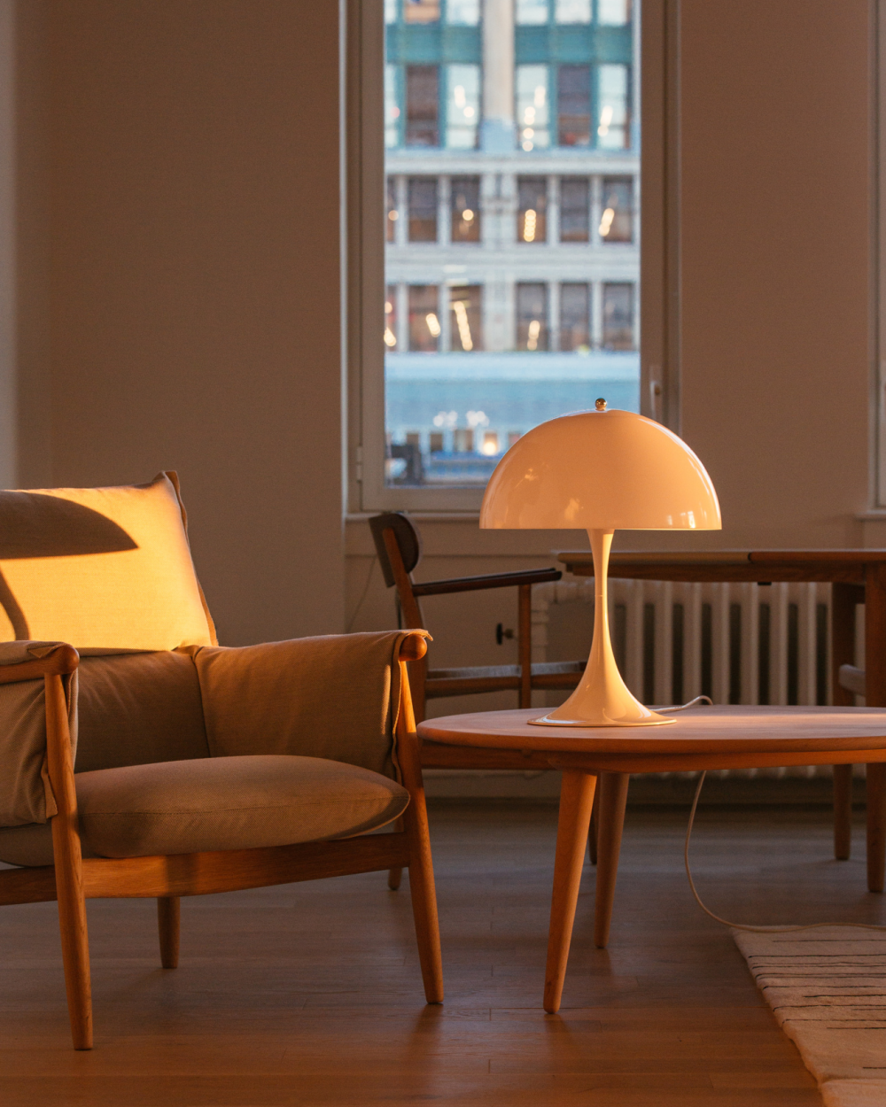 Ora che hai trovato la giusta fonte di luce per la tua lampada e la tua atmosfera, è il momento di pensare alla stanza nel suo insieme. Le isole o le stanze di luce sono, ad esempio, appendere un pendente basso sopra il tavolo da pranzo, posizionare una lampada da terra accanto alla poltrona per leggere un libro, una lampada da tavolo sul davanzale della finestra o su una cassettiera o una libreria: tutte queste piccole isole di luce creano l'atmosfera piacevole che chiamiamo 'hygge' in Danimarca.