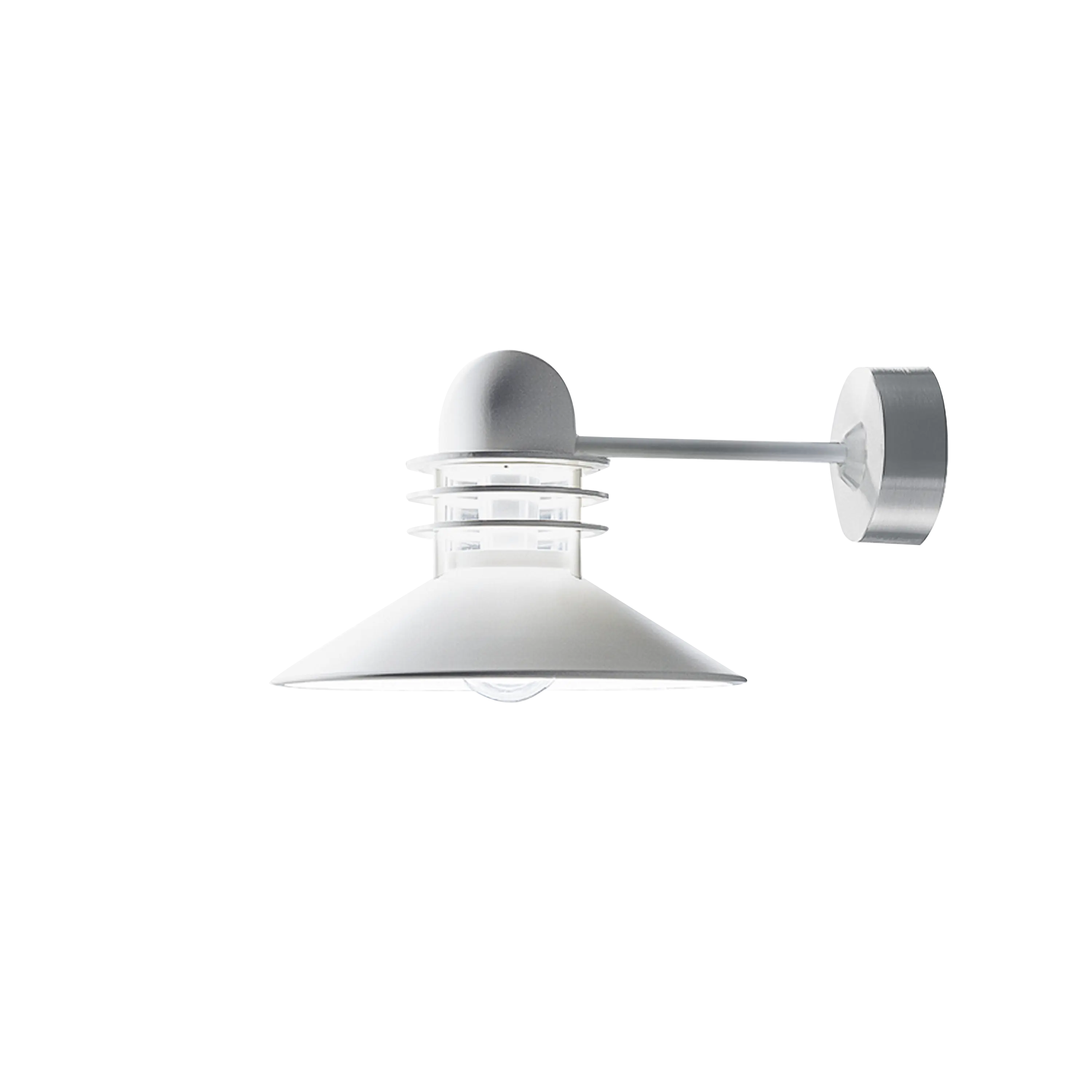 ニューハウン ウォールは、1976年にアルフレッド・ホーマンとオーレ・V・ケアによりデザインされました。ニューハウン ウォールは、古い建物が多い街並みに馴染む照明を課題とした、ルイスポールセン主催のデザインコンペティションで入賞した作品です。当時、製図と模型作りの経験があったアルフレッド・ホーマンは、同僚のオーレ・V・ケアとともにわずか5日間で作品を提出しました。アルフレッド・ホーマンは、このウォールランプのアイディアについてこう説明します。「当時市場に出ていた製品よりも、小型で控えめな照明器具としたことが、ひとつの鍵でした。」この照明の特徴は、円錐形のシェードが下向きに直接光を放ち、上部の3枚のグレア・カット・リングが反射する光が器具自体をほんのり照らしだすところにあります。