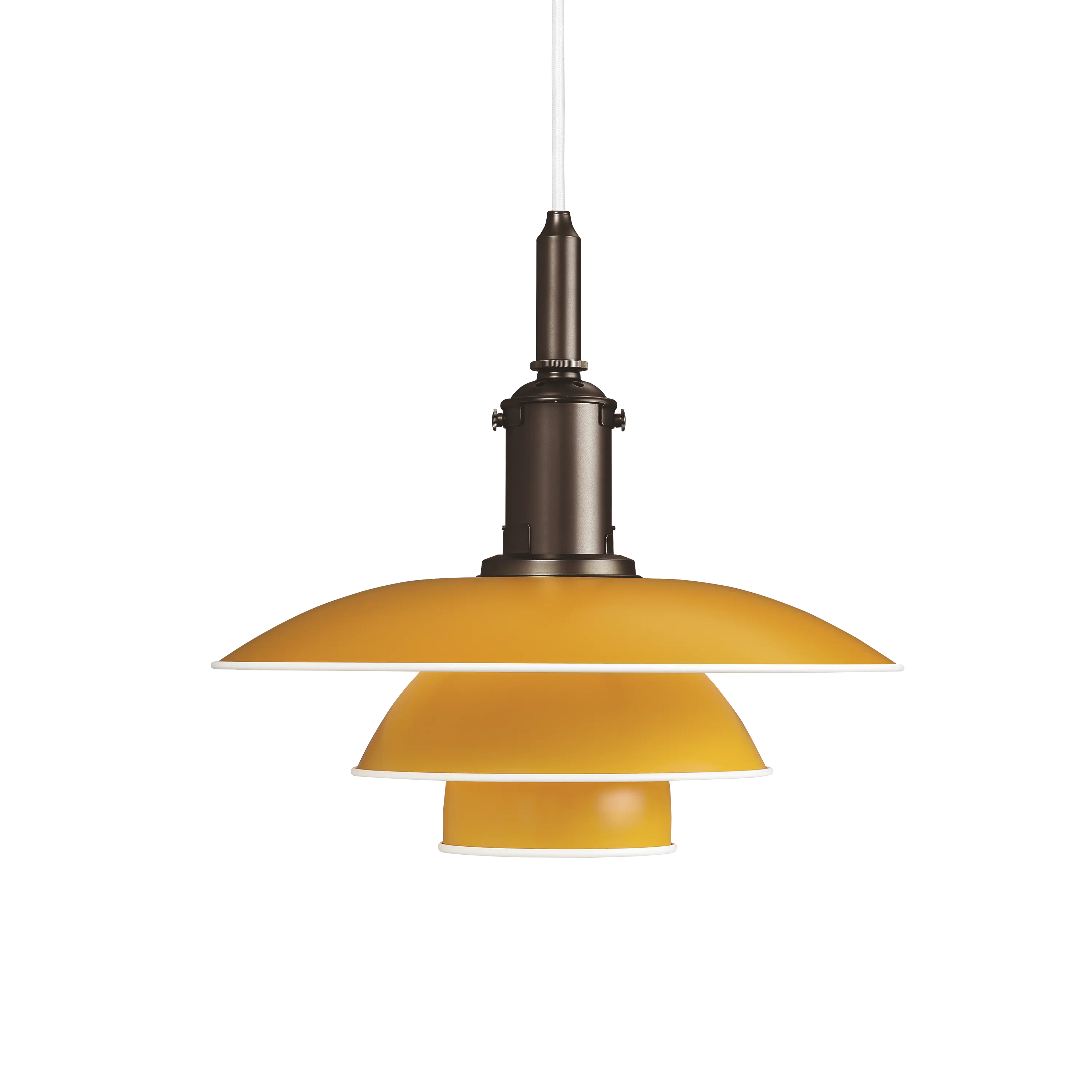 このペンダントは金属製のシェードで、グリーン、イエロー、レッド、ホワイトのヴァリエーションを揃えています。ソケット収納部分は銅製で、シルクマットブラウンの塗装仕上げ。どの色も、ポール・ヘニングセンの色彩観に基づいています。デザイナー自身と同様、多彩です!さらに、各シェードのエッジは巻加工を施して白色塗装されており、おなじみの3枚シェードにアクセントを加え、美しい輪郭が楽しめるのも特徴です。
