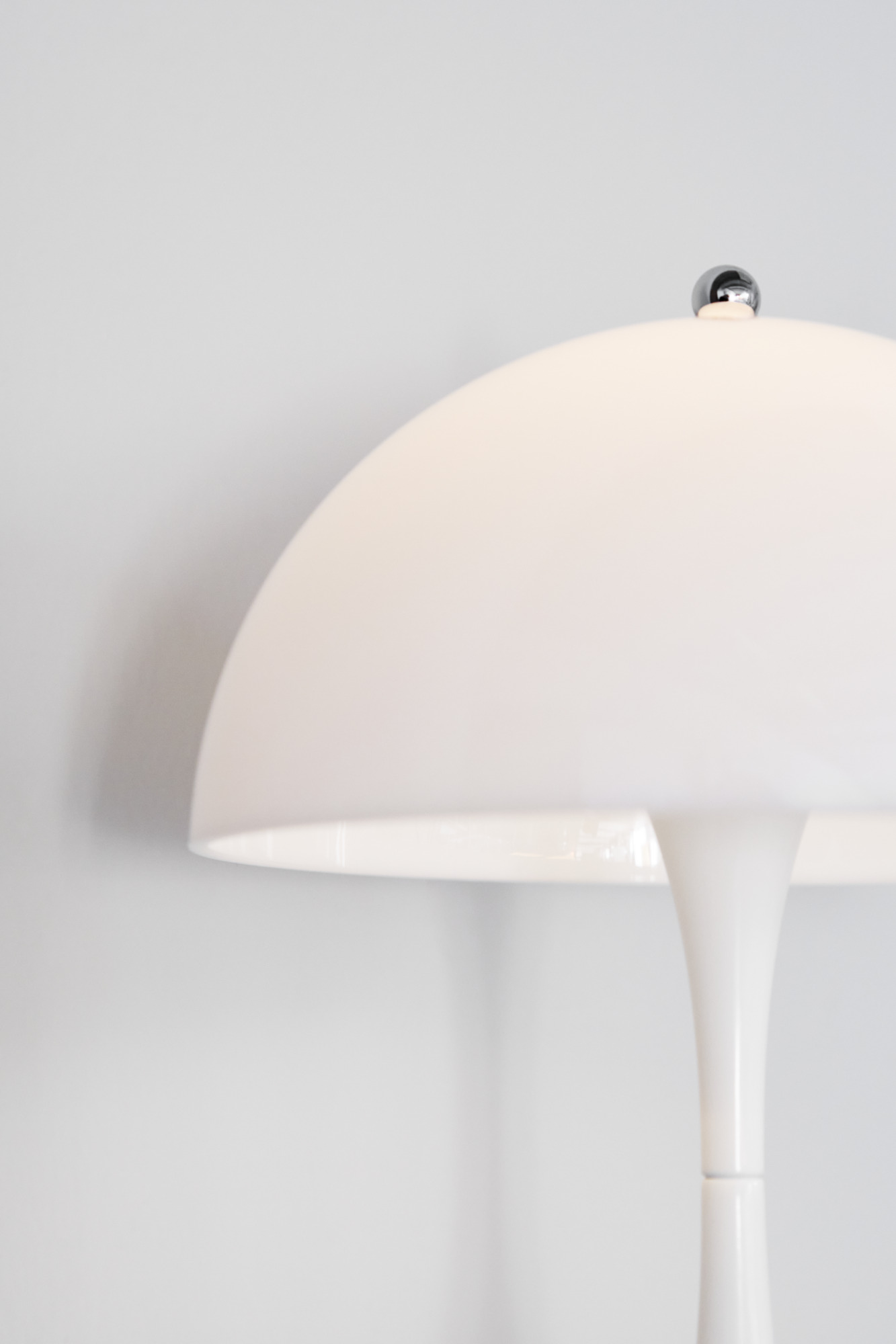 De Panthella 400 tafellamp is erg geliefd dankzij z'n opaalwitte kleurenschema en de kap met een diameter van 400 mm.
