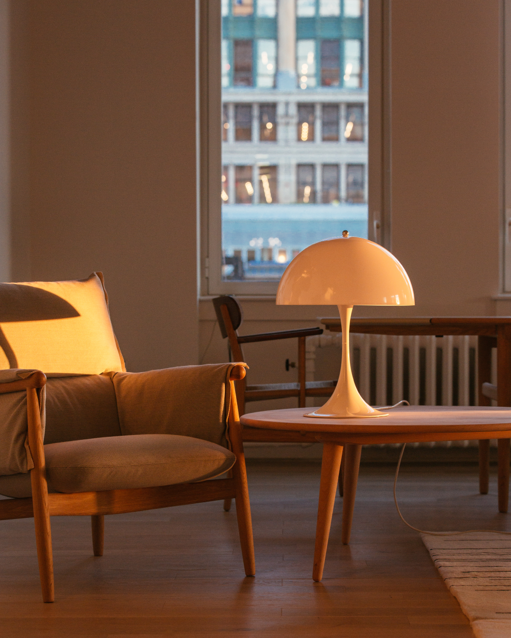 De Panthella werd oorspronkelijk ontworpen in 1971 en staat sindsdien te boek als een van de belangrijkste ontwerpen van Verner Panton. De herkenbare, zachte organische vorm van de tafellamp, in combinatie met de opaalwitte kleur, is niet alleen mooi, maar ook functioneel en zorgt voor een aangenaam verspreid en gereflecteerd licht. De halfronde kap richt het licht naar beneden, zodat het wordt gereflecteerd door het trompetvormige voetstuk.